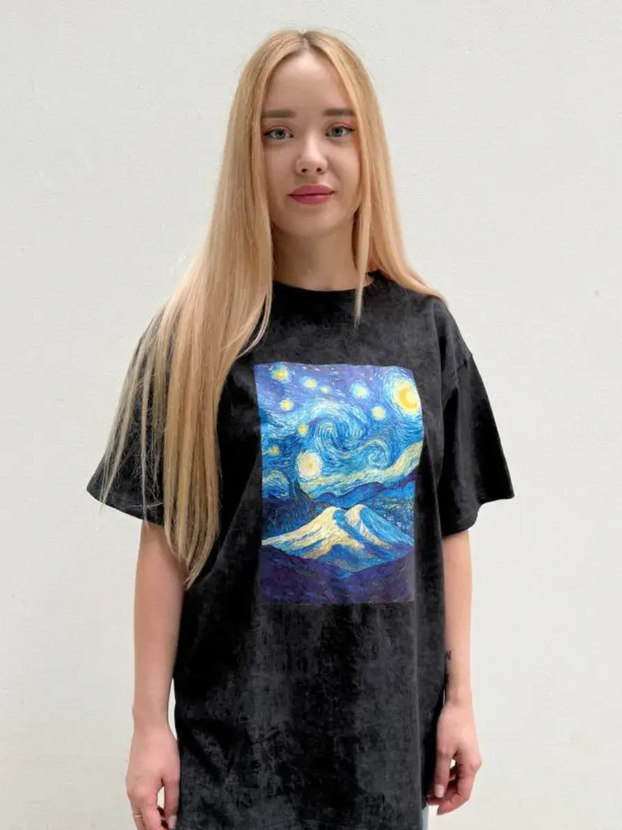 Дизайнерская футболка варенка с принтом Эльбрус в стиле Ван Гога - это стильный и оригинальный выбор для тех, кто ценит комфорт и индивидуальность. Модель унисекс, поэтому подойдет как мужчинам, так и женщинам. Яркий принт вдохновленный величественой горой Эльбрус добавит вашему образу шик и подчеркнет ваш стиль. Футболка изготовлена из качественных материалов, приятна к телу и прослужит вам долго, обеспечит комфорт в течение всего дня.