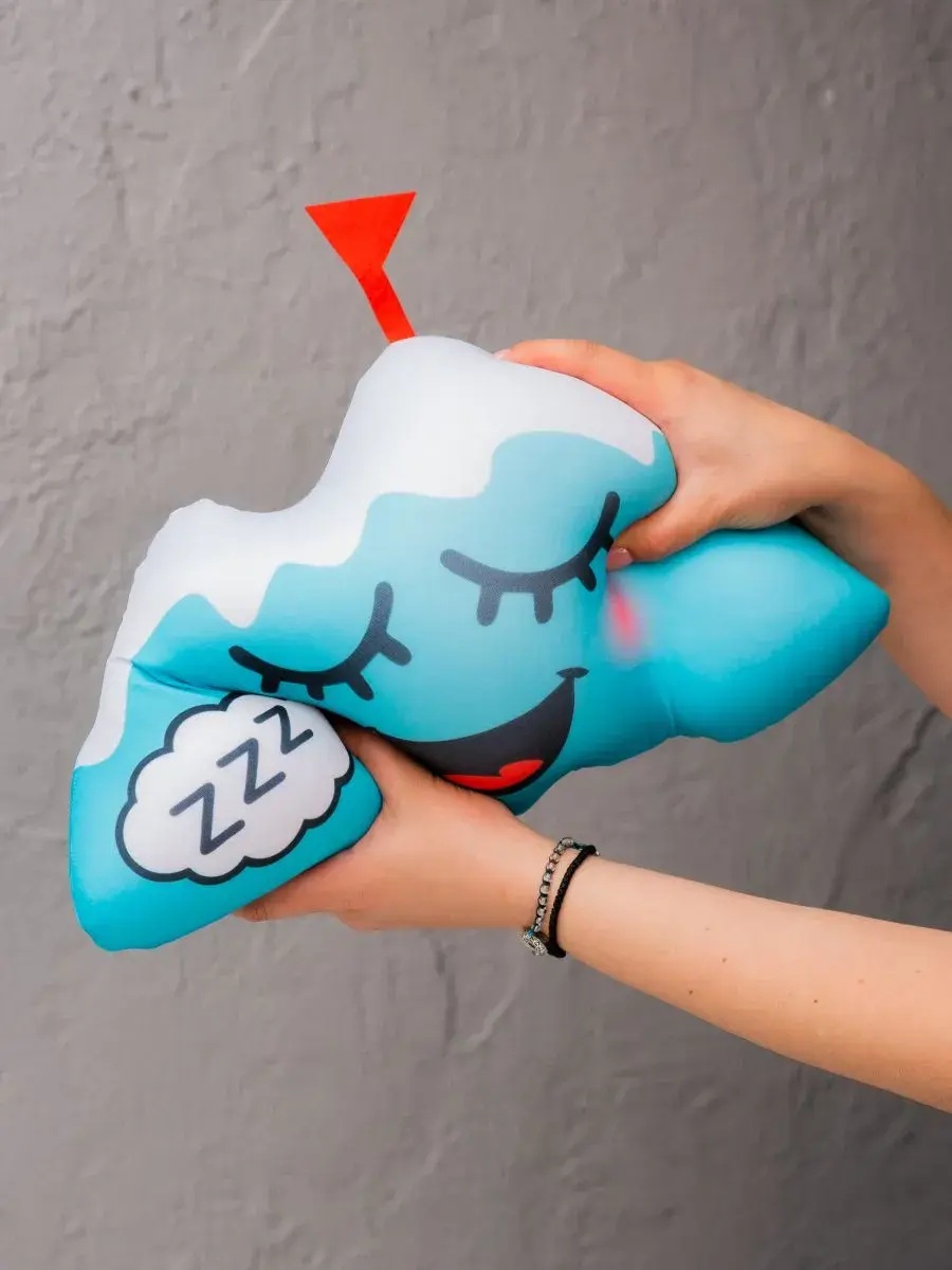Эльбрусик яркий и весёлый персонаж, маленький спящий вулканчик. Эльбрусик подушка - антистресс станет украшением вашего интерьера, это отличный подарок для любителей гор. Эльбрусик будет радовать вас своим ярким и простым дизайном и станет другом, которого можно взять в путешествие, в самолёте он обязательно скрасит часы полёта и будет удобной подушкой, на которой можно спать и отдыхать. Выполнен из качественных материалов. Принт будет радовать яркостью долгие годы. Покоряй вершины! Ведь прототипом подушки стала величественная и могучая гора Эльбрус.